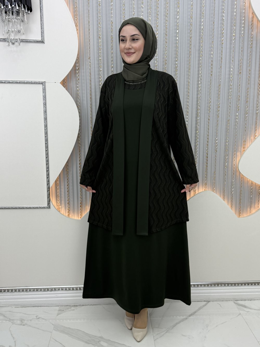 Selen Elbiseli Hırka Haki