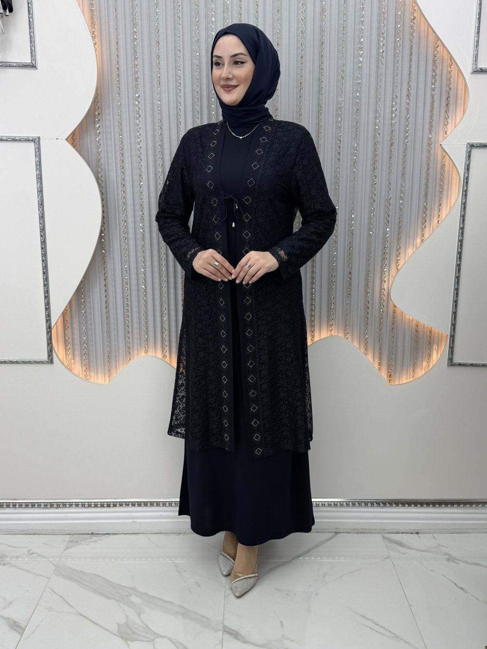 Serin Elbiseli Hırka Lacivert
