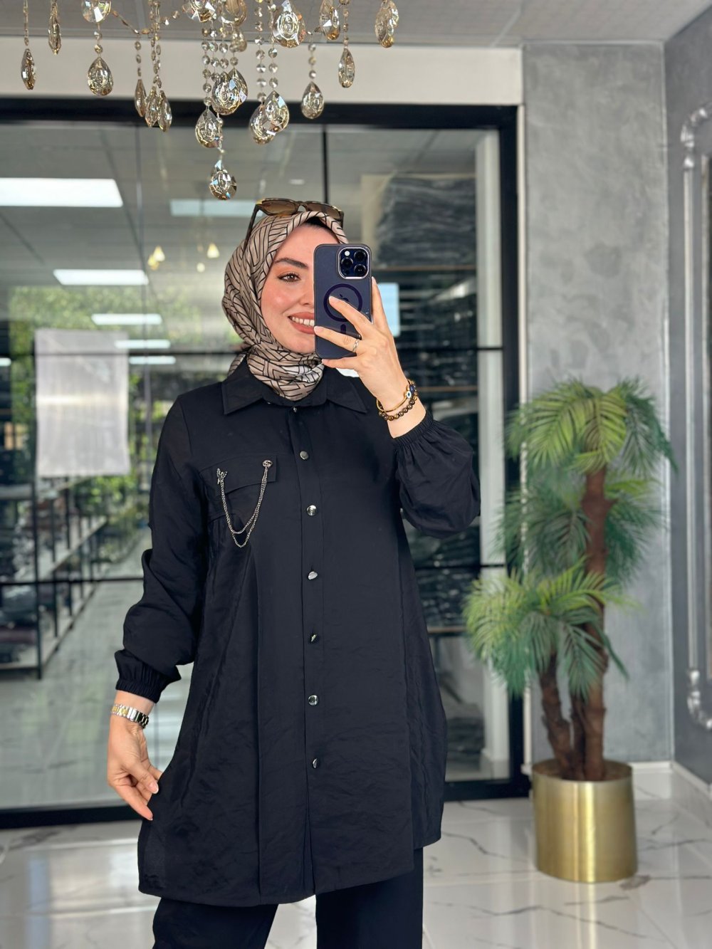 Modal Paraşüt Kumaş, Gömlek Düğmeli,Yanları Yırtmaçlı,Kol Ağızı Lastikli, Sahte Cep Kapak Aksesuarlı, Pantolon Beli Lastiklidir.