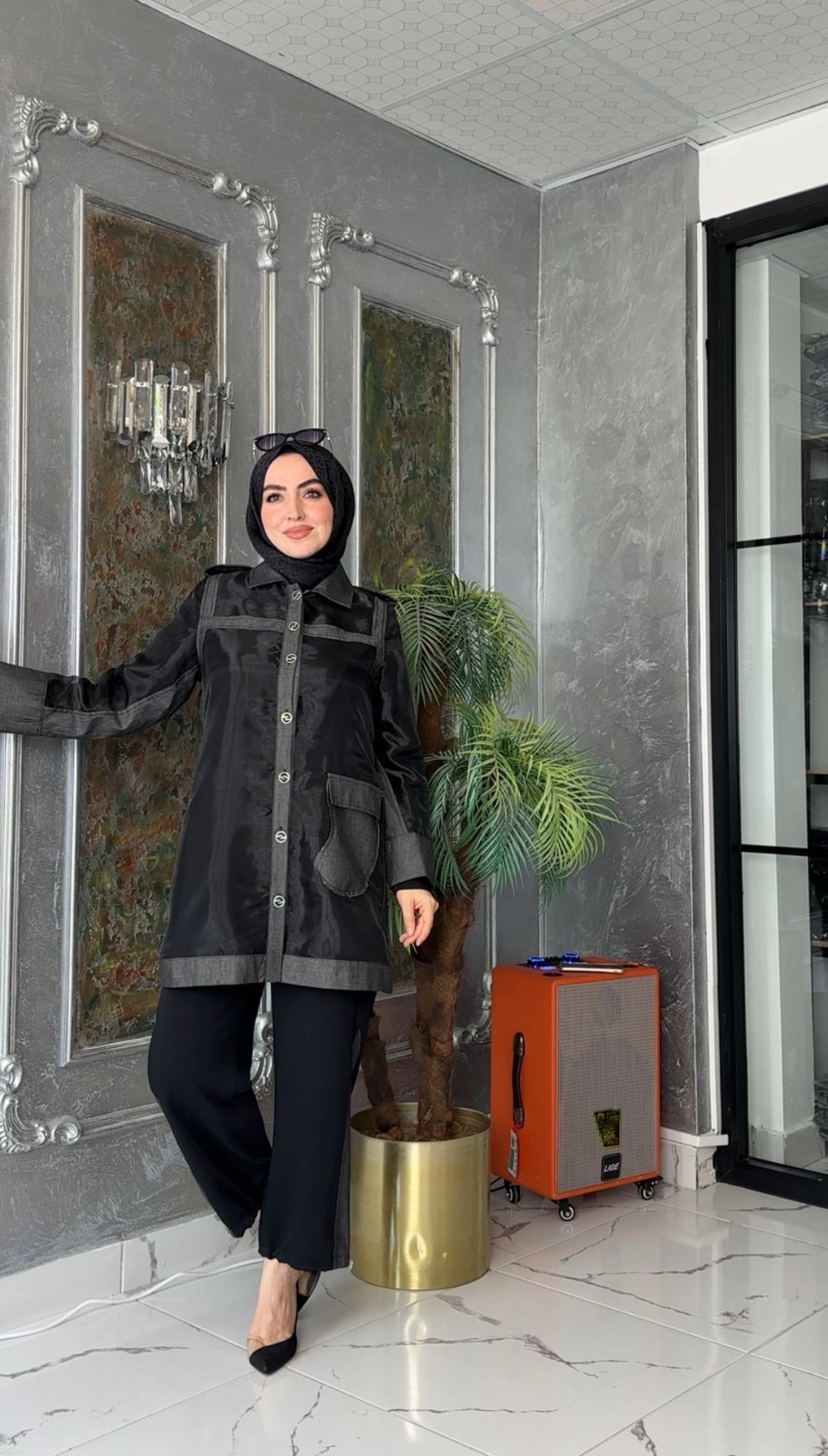 Organze kumaştır. Ceket Düğmeli,Smile Baskı,Pantolon Bel Lastiklidir.