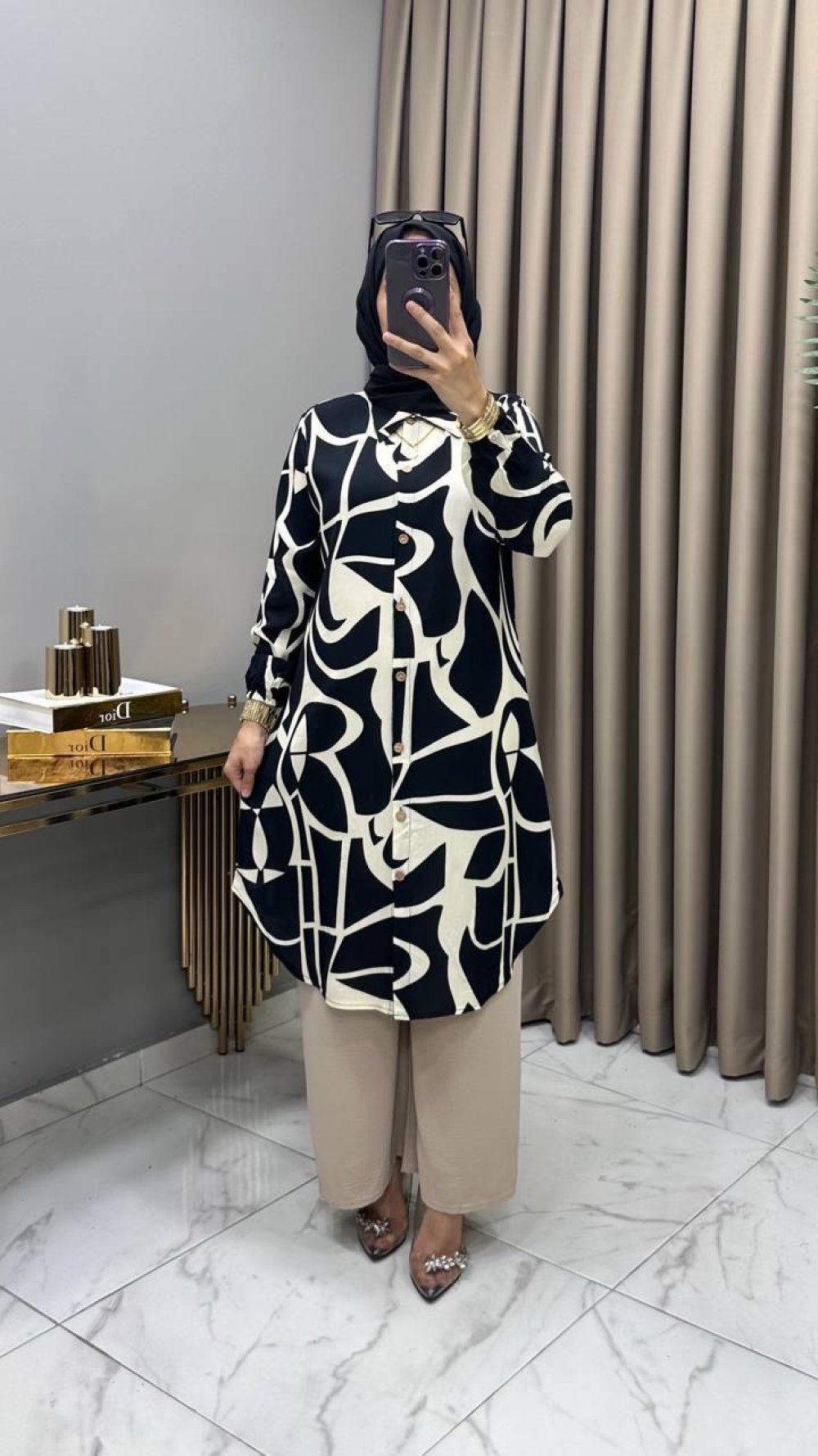 Tunik , boydan komple düğmelidir,