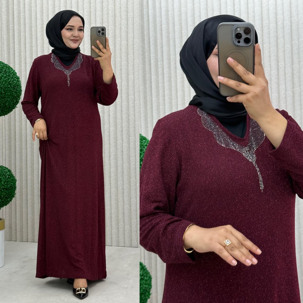 Süslü Elbise Bordo