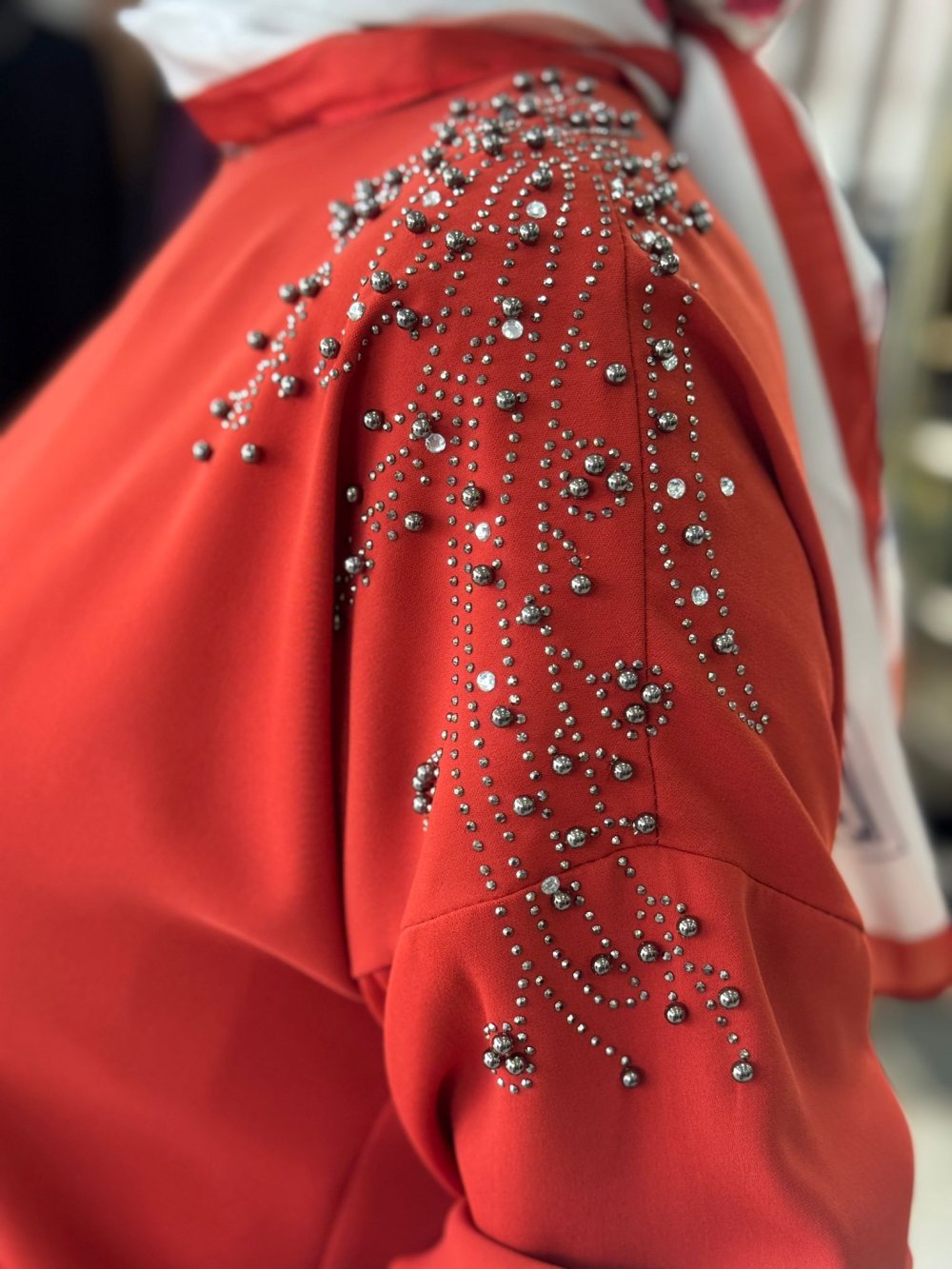 Krep Kumaştır,  Omuz Taş Aksesuarlı, Pantolon Beli Lastikli, Cepsizdir.